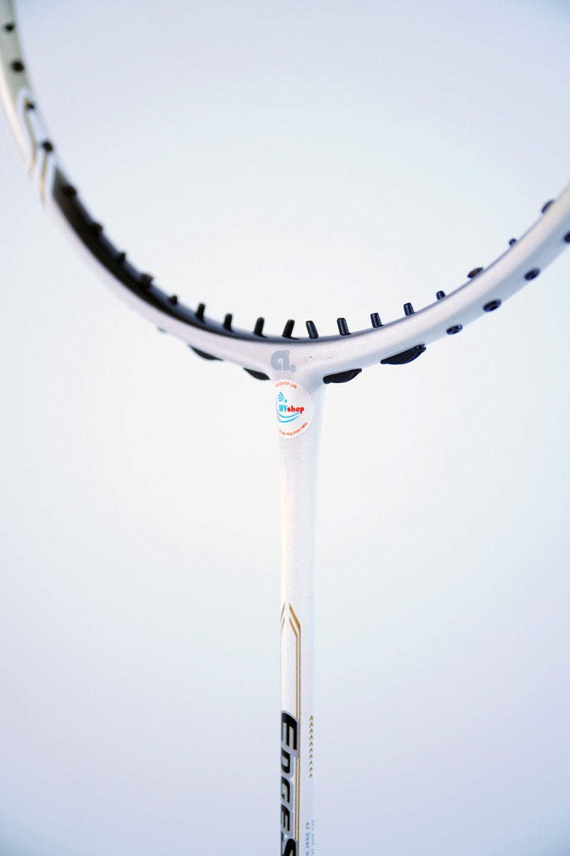 Thiết kế khung vợt Isometric Head Frame đầu vợt thuôn nhọn hơi vuông hơi hướng hiện đại kết hợp màu Trắng chủ đạo cùng các chi tiết màu vàng đồng chạy dọc theo khung và đũa vợt giúp tổng thể cây vợt khi trên tay trông khỏe khoắn, đầy năng lượng nhưng không kém phần đẹp mắt.