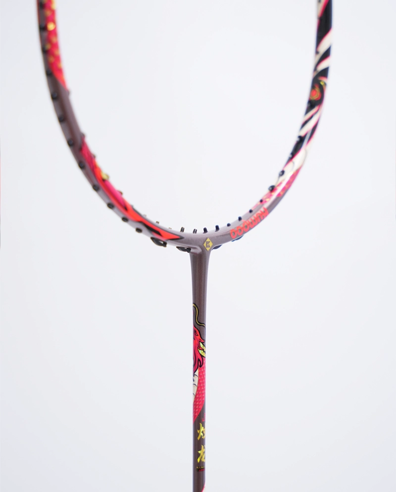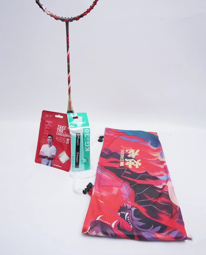 Nhân vật chính dành được sự chú ý lớn nhất là chiếc vợt cầu lông Kumpoo Zhulong Đỏ. Có thiết kế độc đáo với họa tiết chú rồng bao quanh khung và thân vợt, các vảy rồng in nổi 3D kì công cực kỳ thích mắt cùng phối màu đỏ – vàng đồng chủ đạo, đảm bảo sẽ khiến các tay vợt ưa thích phong cách mạnh mẽ không thể rời mắt.
