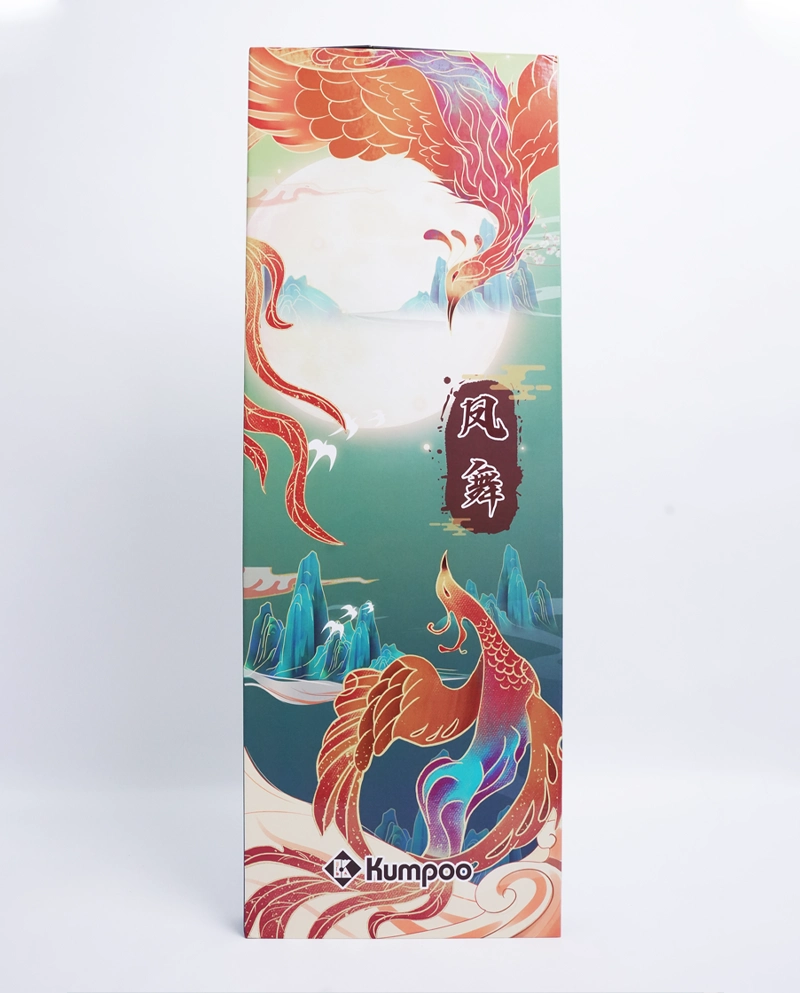 Nếu set vợt ZhuLong gây ấn tượng ngay từ vẻ ngoài dũng mãnh cùng màu sắc nổi bật, thì set vợt Kumpoo Phoenix lại có phần mềm mại và tinh tế hơn. Ngay từ thiết kế vỏ hợp độc đáo với hình ảnh những cánh phượng nhẹ nhàng, thướt tha, mang trên mình bộ lông đầy rực rỡ hòa mình giữa khung cảnh trăng và núi hữu tình đẹp như một bức tranh phong cảnh đầy sống động.