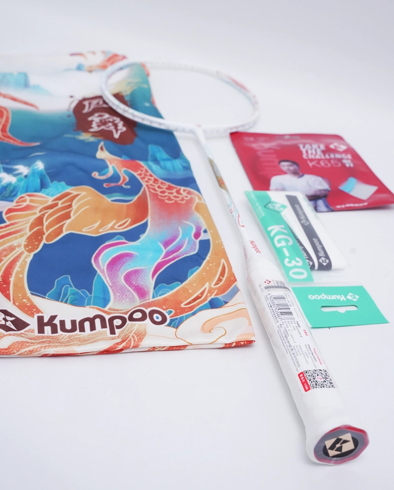 Một set vợt cầu lông đầy đủ sẽ bao gồm 1 cây vợt Kumpoo Phoenix phiên bản giới hạn, 1 bao đựng vợt đẹp mắt, 1 bộ dây cước và quấn cán Kumpoo. Tất cả được sắp xếp gọn hàng vào một chiếc hộp vuông vắn với họa tiết hoa văn cầu kì, tinh xảo, đẹp mắt và cao cấp đảm bảo sẽ khiến các lông thủ không thể rời mắt.