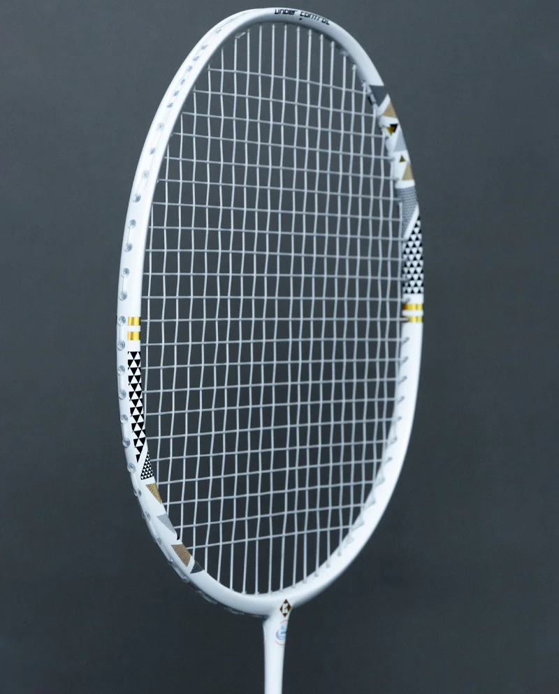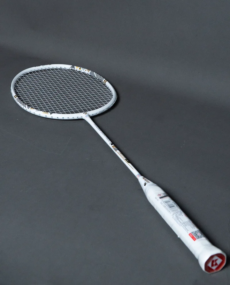 Thiết kế vợt Kumpoo Power Control E88LS với nước sơn trắng thuần khiết, sử dụng các họa tiết đối xứng làm điểm nhấn trên khung vợt, cho cây vợt vẻ đẹp phóng khoáng, hiện đại, rất thích hợp với các lông thủ ưa thích tông màu trung tính những vẫn nổi bật và đầy thu hút trên sân cầu.