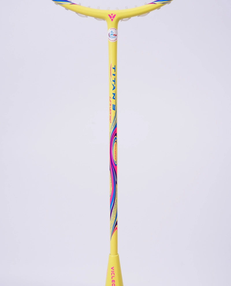 Vợt cầu lông Vicleo Titan 3 gây ấn tượng mạnh mẽ ngay từ khi được cho ra mắt làng cầu lông lần đầu tiên với vẻ ngoài rực rỡ đầy sự trẻ trung và khỏe khoắn. Được phủ trên mình nước sơn vàng nổi bật, chấm phá với các họa tiết màu sắc uốn quanh khung mềm mại, đem lại thiết kế đầy ấn tượng, bắt mắt, tràn đầy năng lượng và sự linh hoạt trong từng pha vung vợt trên sân cầu.